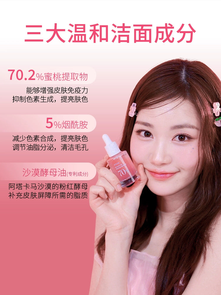 Anua蜜桃70烟酰胺精华30ml淡化痘印改善暗沉提亮肤色收缩毛孔