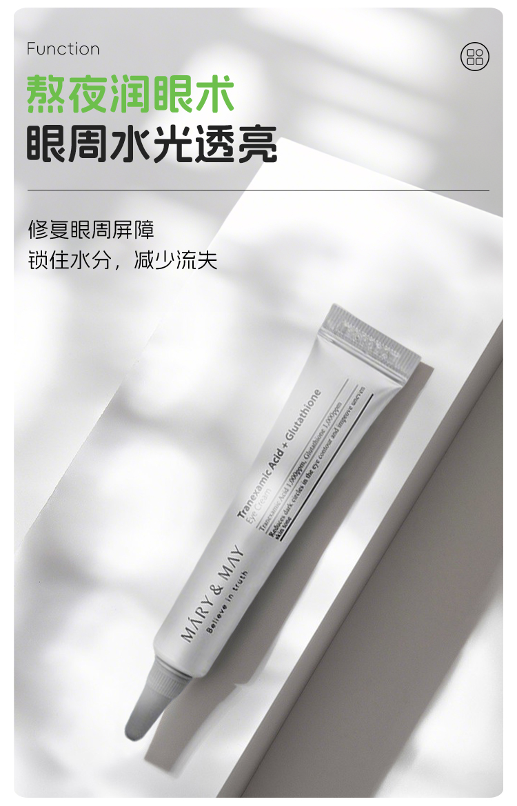 Mary&May传明酸谷胱甘肽眼霜小样淡化黑眼圈提亮眼周熬夜细纹12g